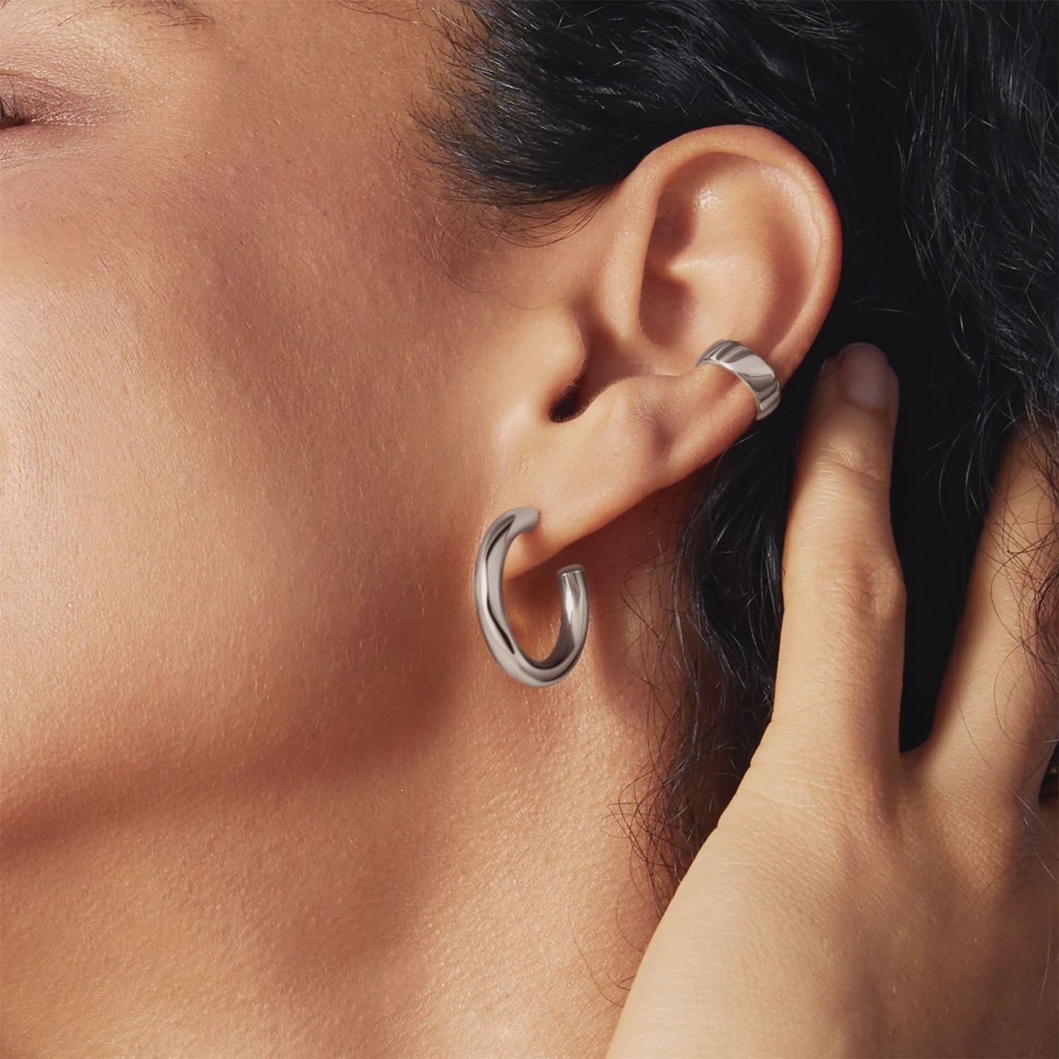 Crafted with clean lines and a smooth, gleaming finish, these huggie earrings offer understated versatility. Their close-fit design ensures all-day comfort, moving seamlessly from day to night. Whether worn alone for a minimalist look or paired with larger hoops, they provide a polished foundation to any style. Designed for the modern individual who values timeless elegance and effortless wear.