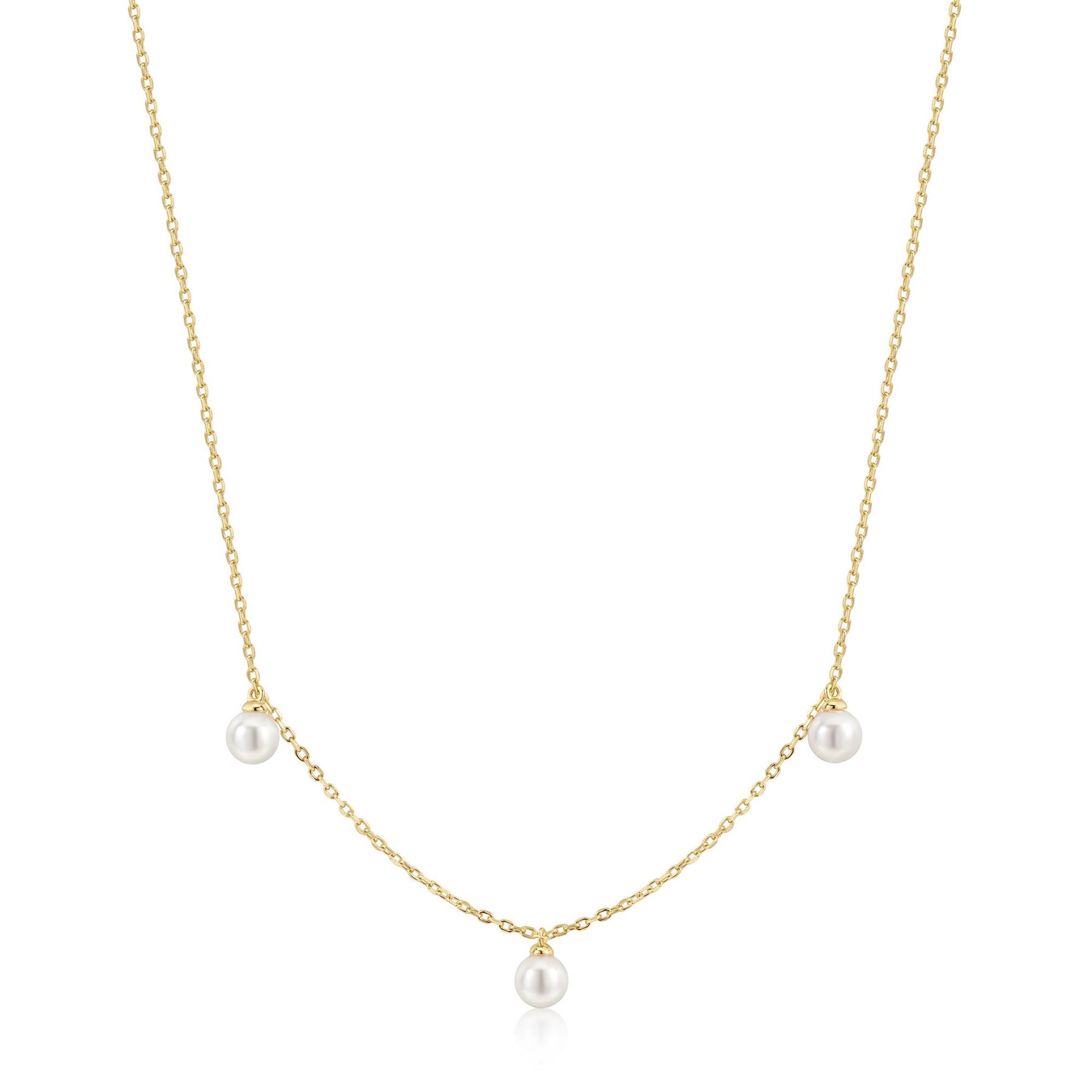 For the woman who exudes effortless elegance with a spark of playful charm. This necklace features lustrous shell pearls meticulously set at precise stations along a delicate chain. Layer it effortlessly with a statement piece or delicate chains to create a truly captivating look. Perfect for parties and special gatherings, it adds just the right amount of shine to your most memorable moments—whether you're dressing up for a celebration or selecting a gift for someone special.