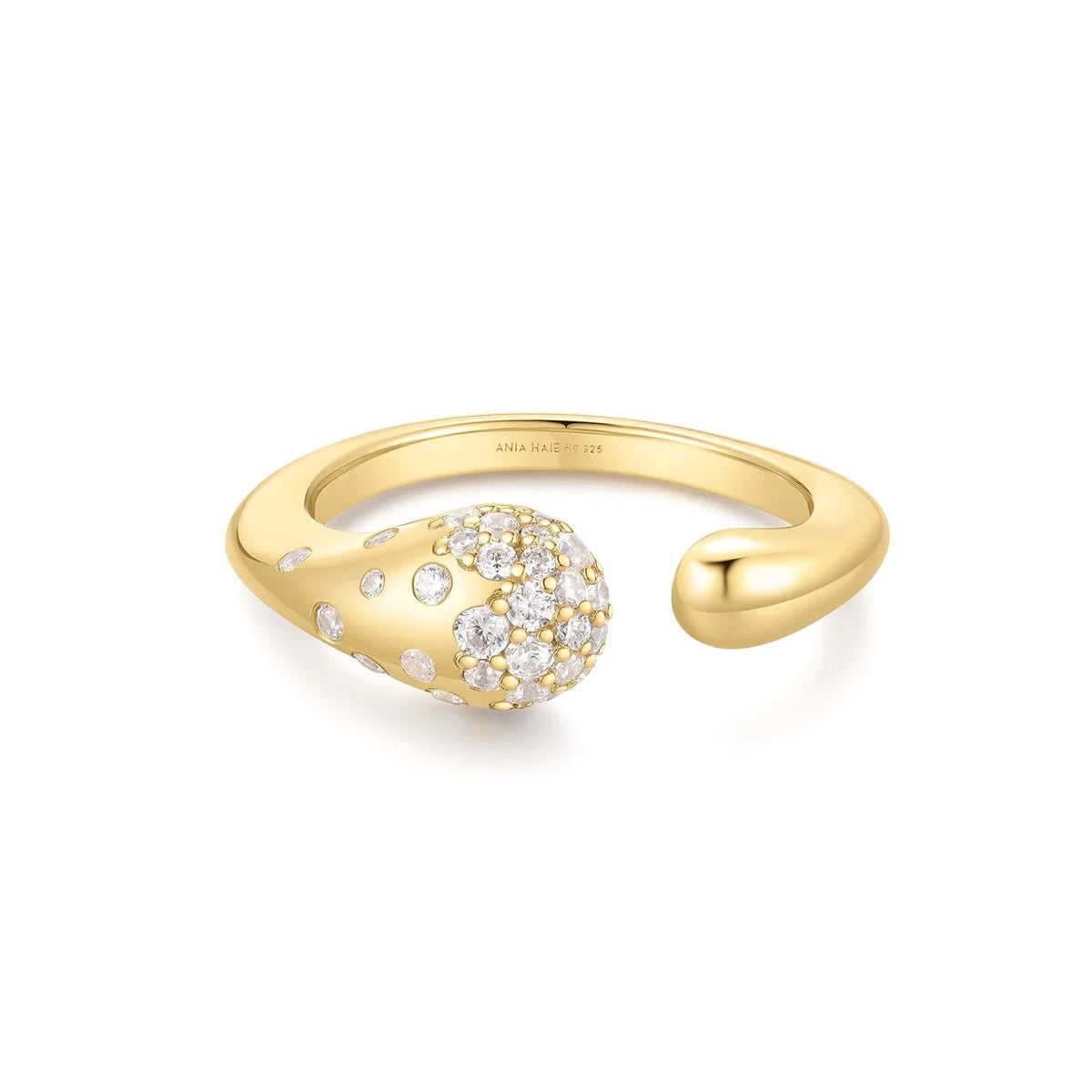 Step into the world of celestial romance with this season’s must-have trend! This sculptural ring has captivated everyone's attention. The intricate design features a fluid shape, adorned with sparkling cubic zirconia stones that catch the light with every movement. Embrace the joy and sophistication as you shine in every moment.