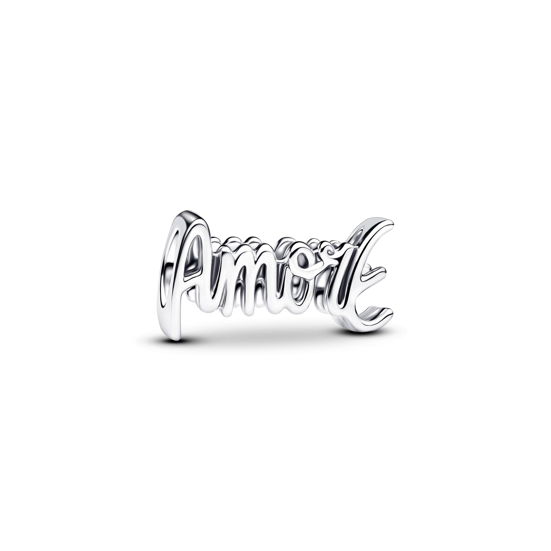 Lean in to love with this eye-catching charm. Crafted in sterling silver with the handwritten word “AmorE” in an openwork design, it’s a bold expression of the love that connects us all.