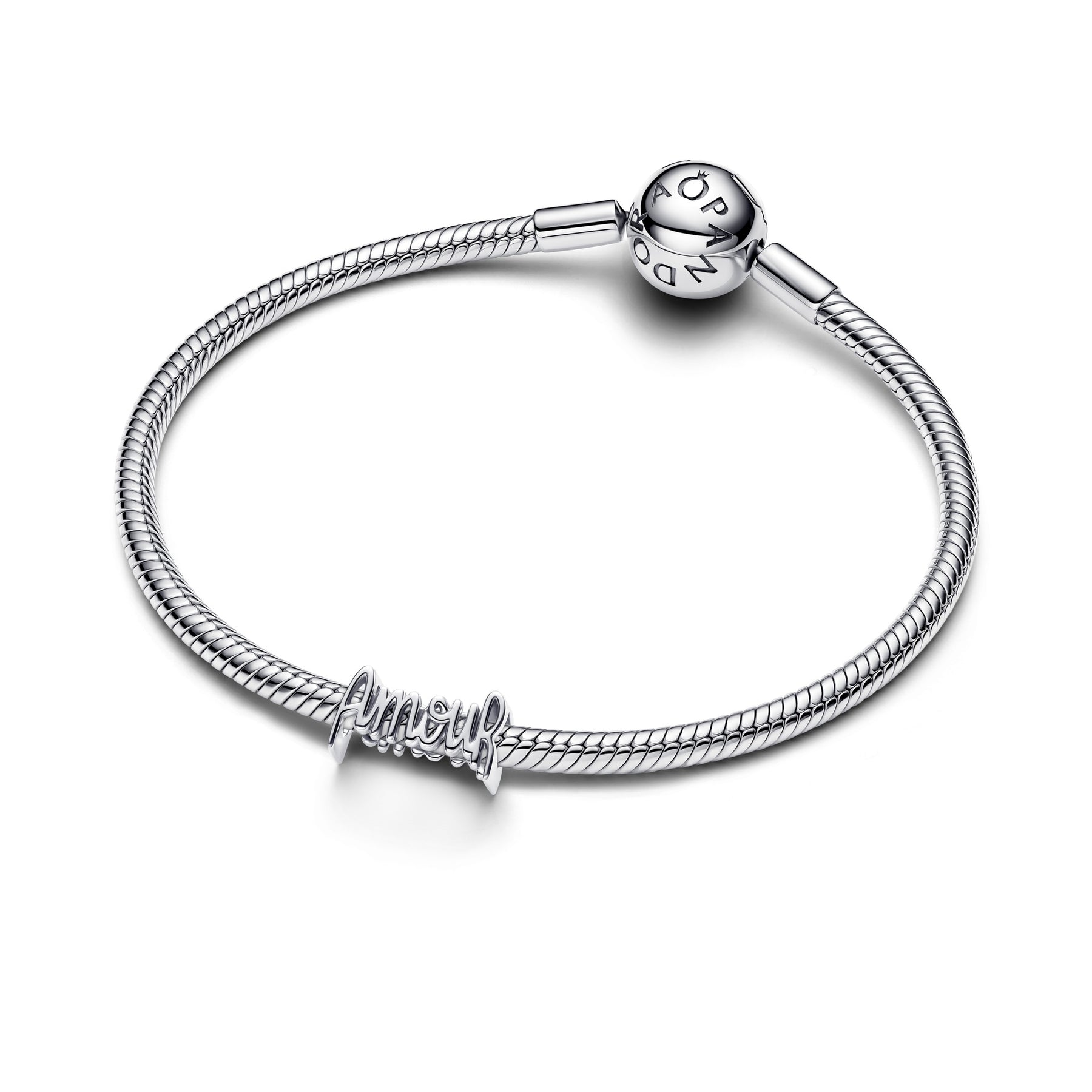Lean in to love with this eye-catching charm. Crafted in sterling silver with the handwritten word “AmouR” in an openwork design, it’s a bold expression of the love that connects us all.