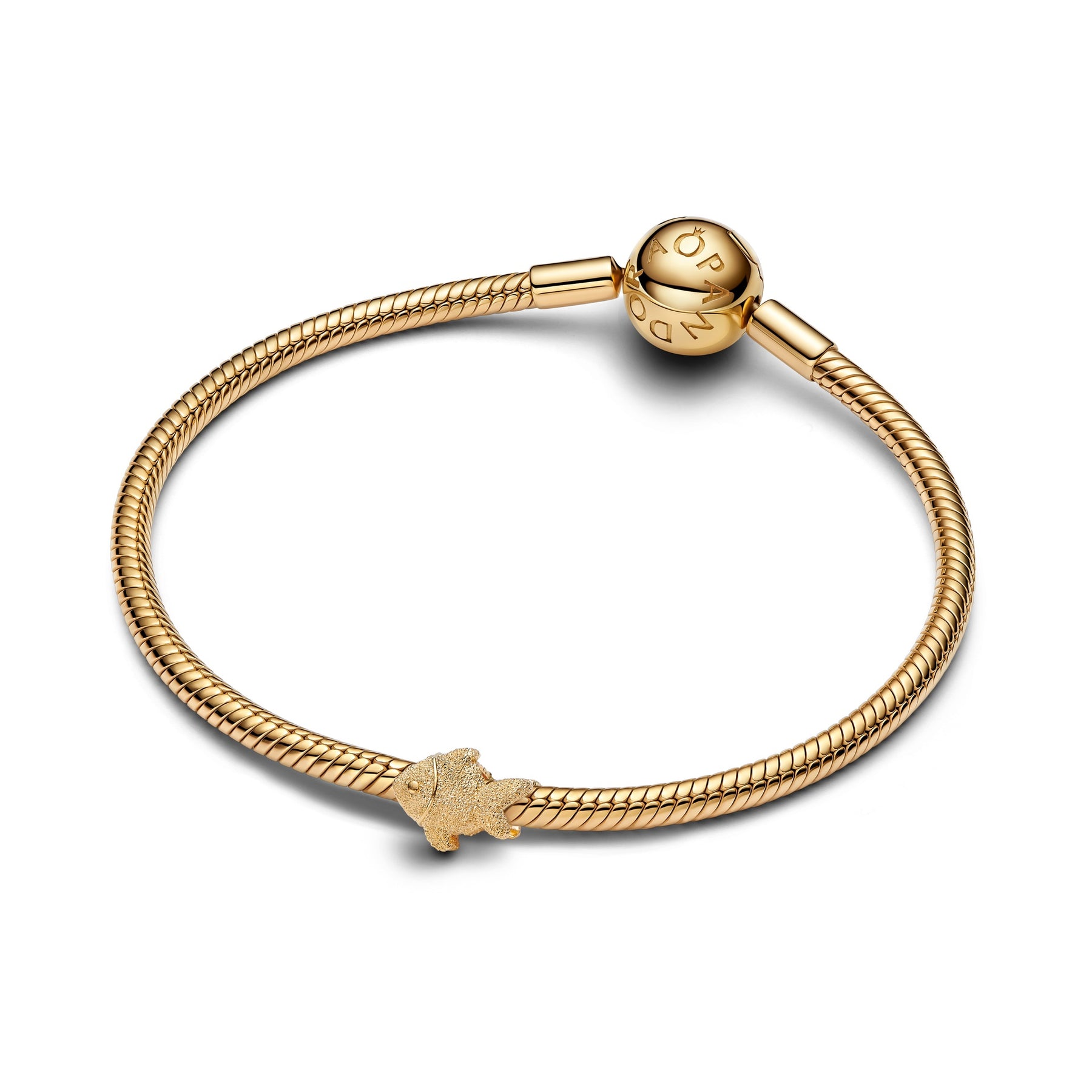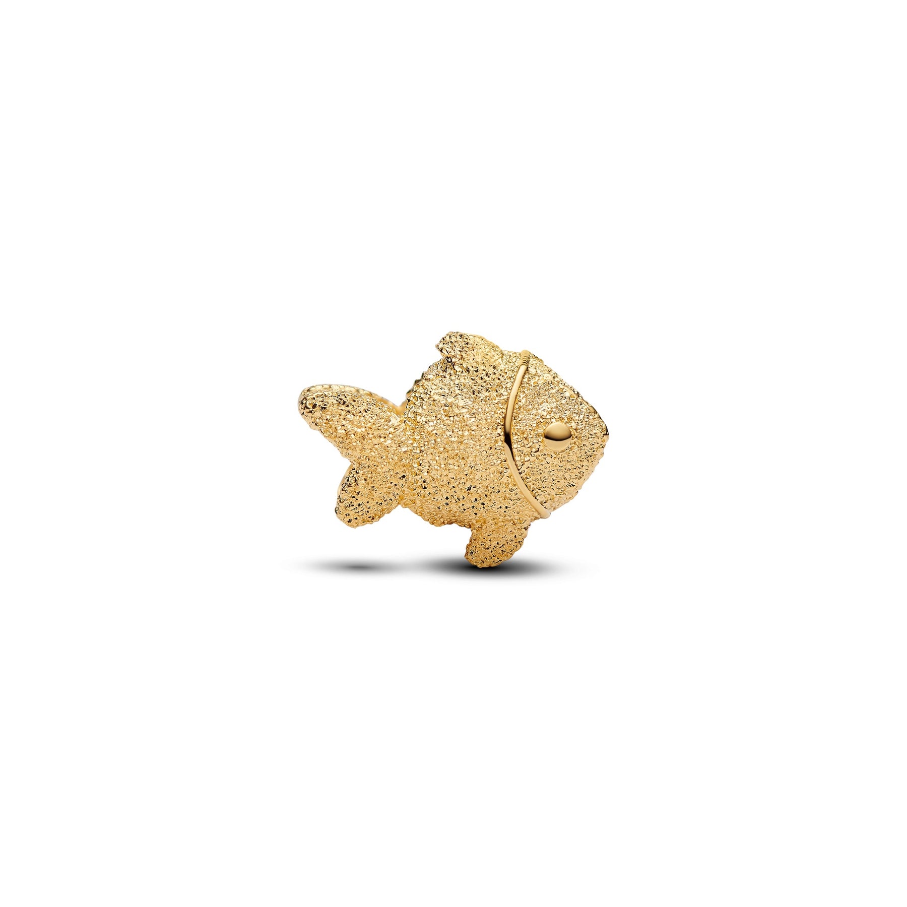 Go with the flow. This 14k gold-plated mini fish charm shines with a diamond-point texture, symbolising freedom and calm energy.
