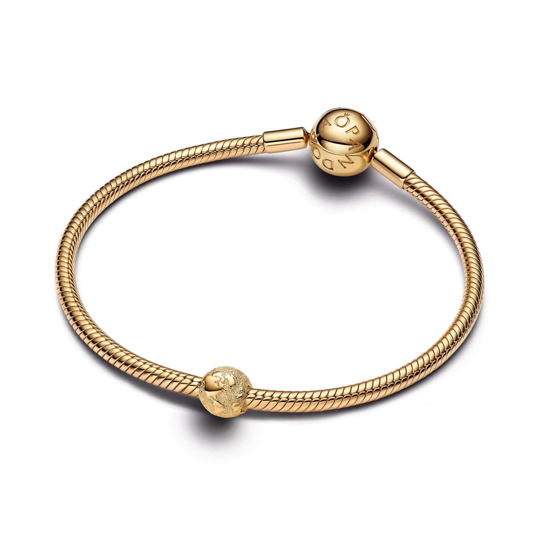 Explore the world in style. This 14k gold-plated mini globe charm sparkles with a diamond-point texture, symbolising wanderlust and connection.