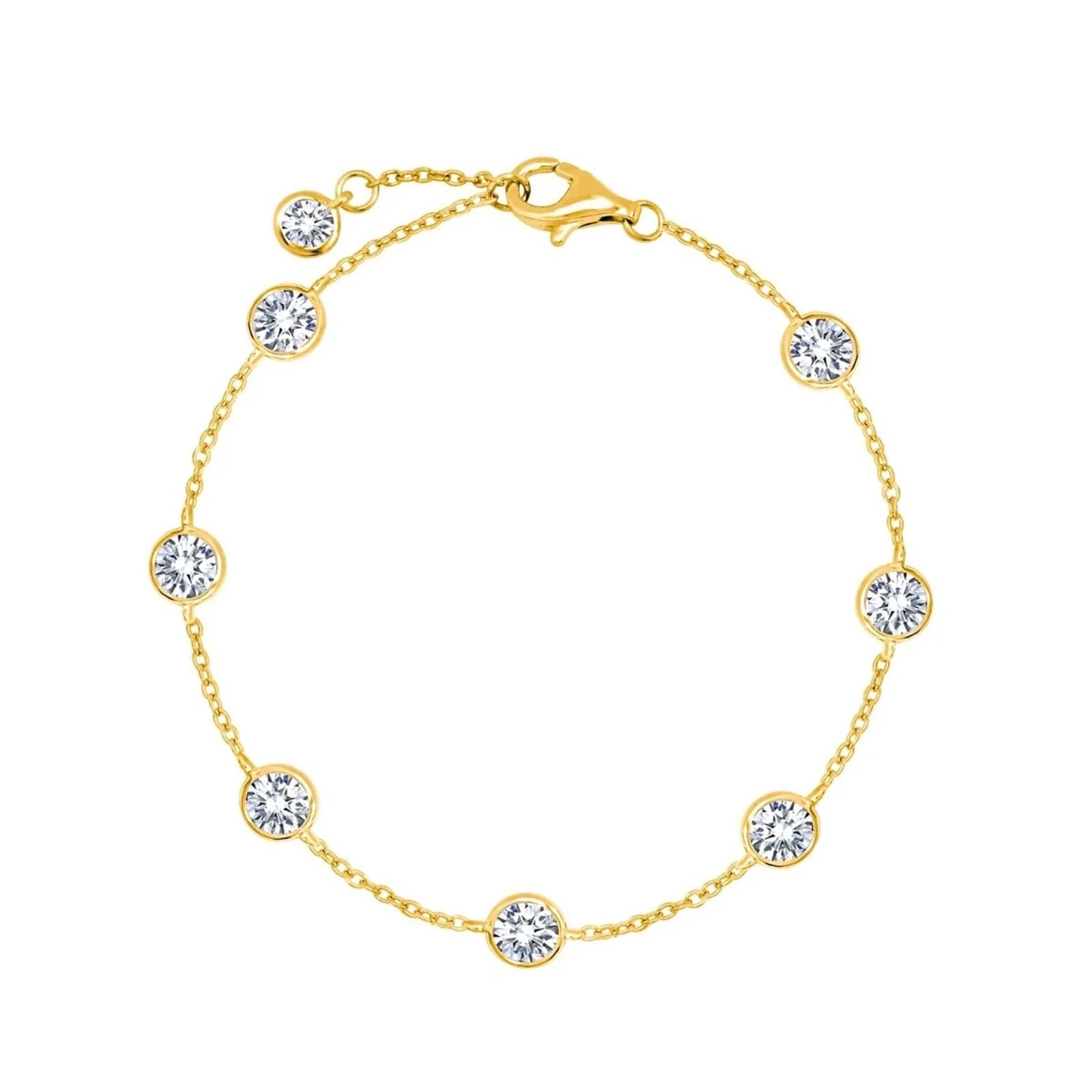 This Station Anklet features 4mm studs of bezeled cubic zirconia and is extendable from 9.5"-10" and 10.5". Each CRISLU flawless and exquisitely cut cubic zirconia stone is handset in precious .925 sterling silver and finished in 18k yellow gold or pure platinum for a total diamond equivalent weight of 2.00 ctw. CRISLU jewelry is 100% hypoallergenic.
