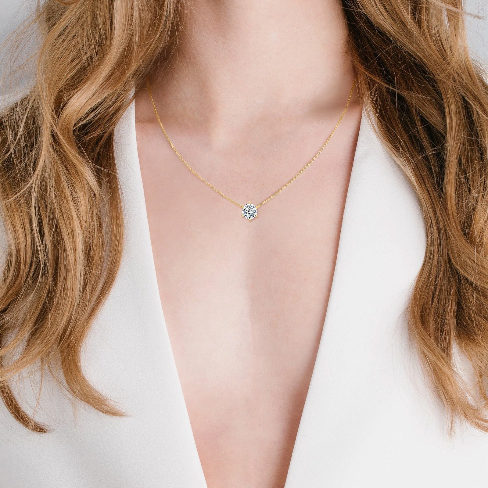 This classic pendant necklace features a solitaire 6 prong cubic zirconia, for a total carat weight of 2.0. This necklace is crafted in .925 sterling silver finished in 18k yellow gold, with flawless handset cubic zirconia, on a chain that extends from 16" to 17" and 18". CRISLU jewelry is 100% hypoallergenic.