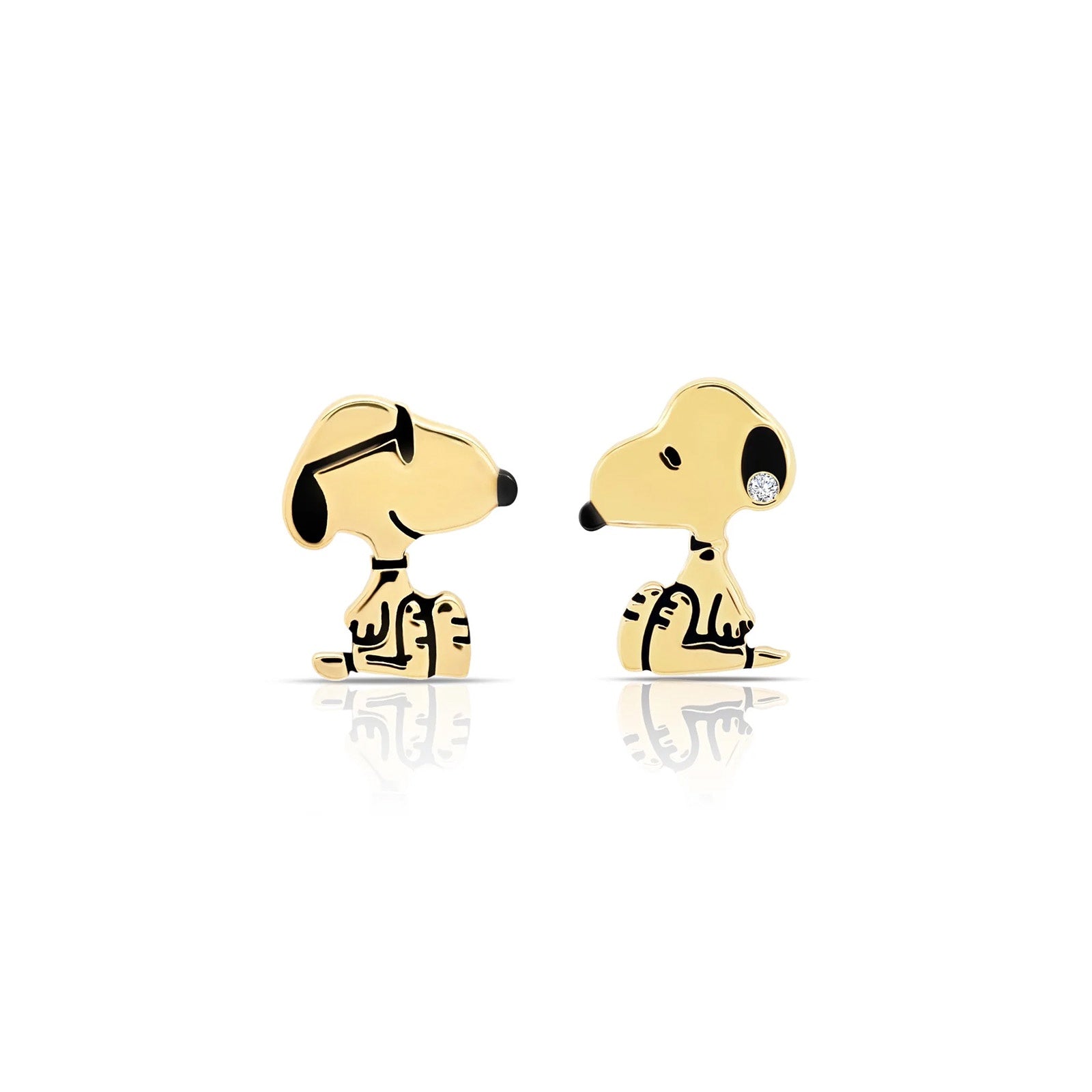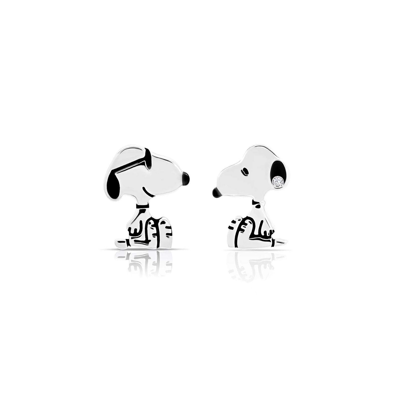 These Cool Snoopy stud earrings feature a polished Snoopy silhouette with black enamel detailing and a single round cubic zirconia accent set at the ear. These earrings are crafted in .925 sterling silver finished in pure platinum or 18k yellow gold. Designed for comfortable all-day wear with secure post backs. CRISLU jewelry is 100% hypoallergenic.
