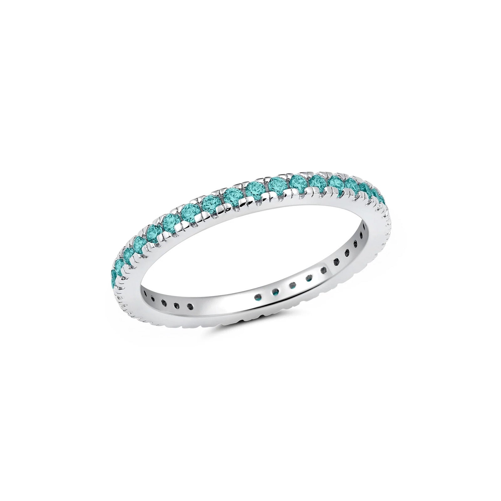 This elegant eternity band is 2.8 mm wide and features brilliant-cut March birthstones, for a total weight of 0.6 carats. This ring is crafted in .925 sterling silver finished in 18k yellow gold or pure platinum, with flawless handset cubic zirconia. CRISLU jewelry is 100% hypoallergenic.