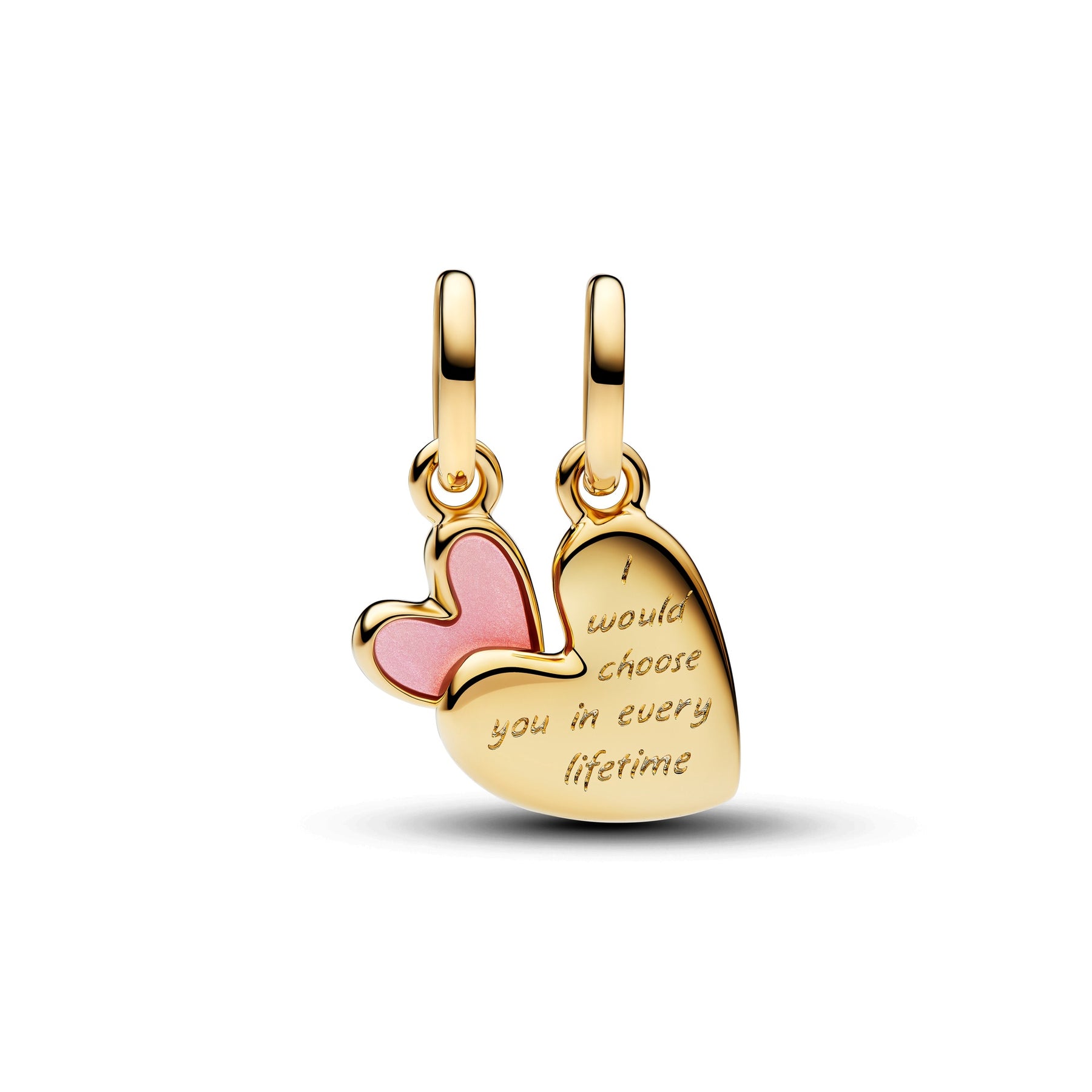 Celebrate the bonds between mothers and daughters. Crafted in 14k gold plating with pink bioresin man-made mother of pearl, it features the engravings 'mother', 'daughter' and 'I would choose you in every lifetime'.