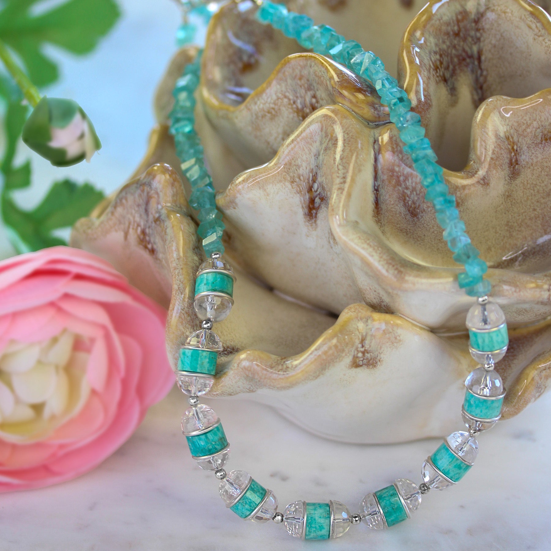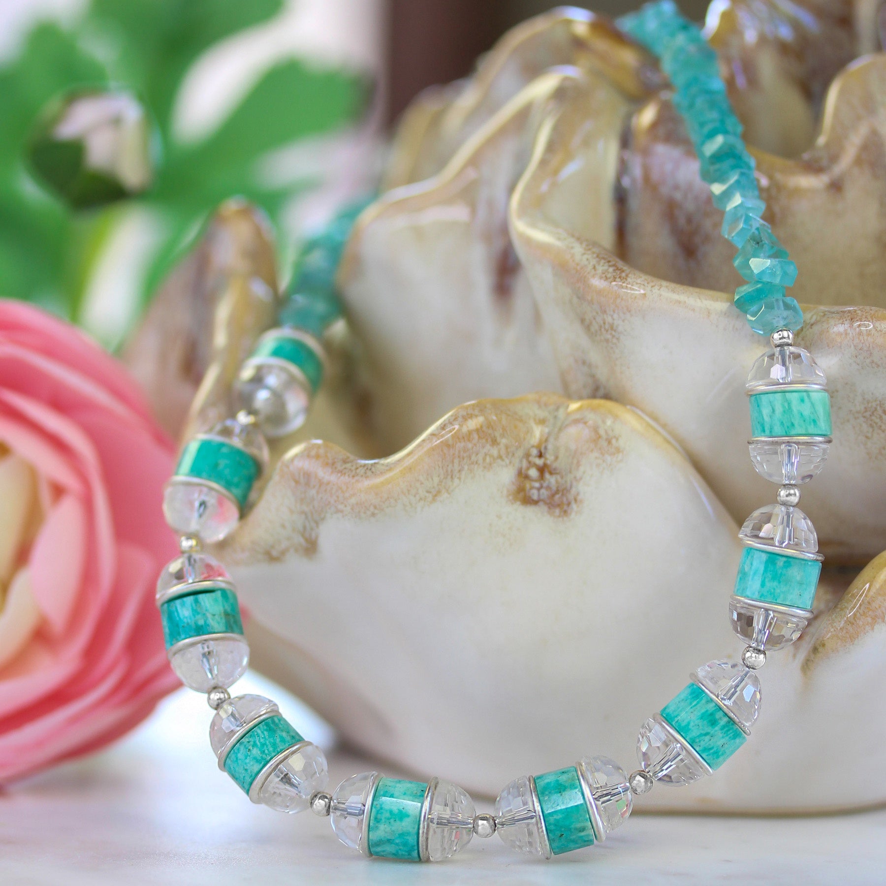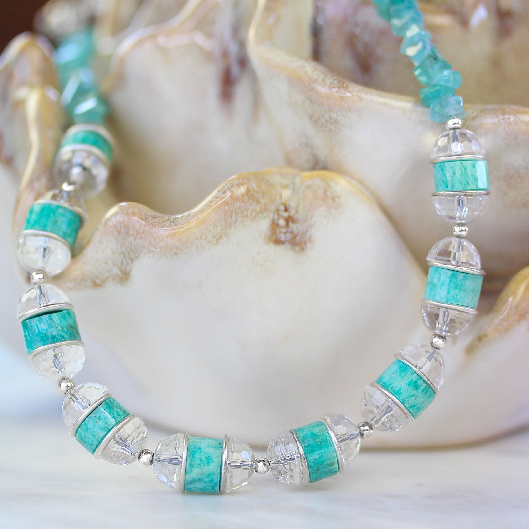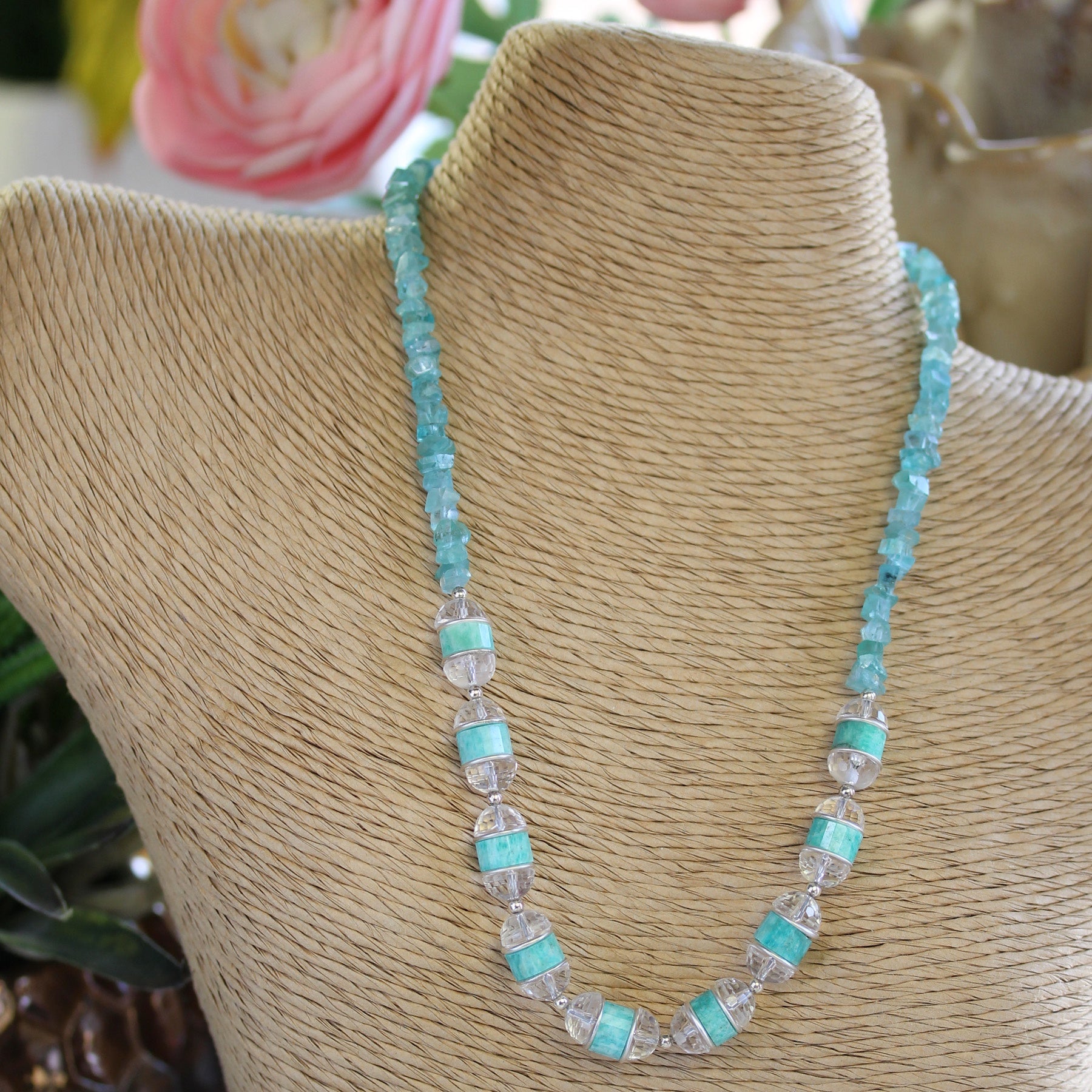 Fresh, luminous, and beautifully balanced — this necklace features genuine Russian Amazonite paired with faceted clear quartz, accented in sterling silver.