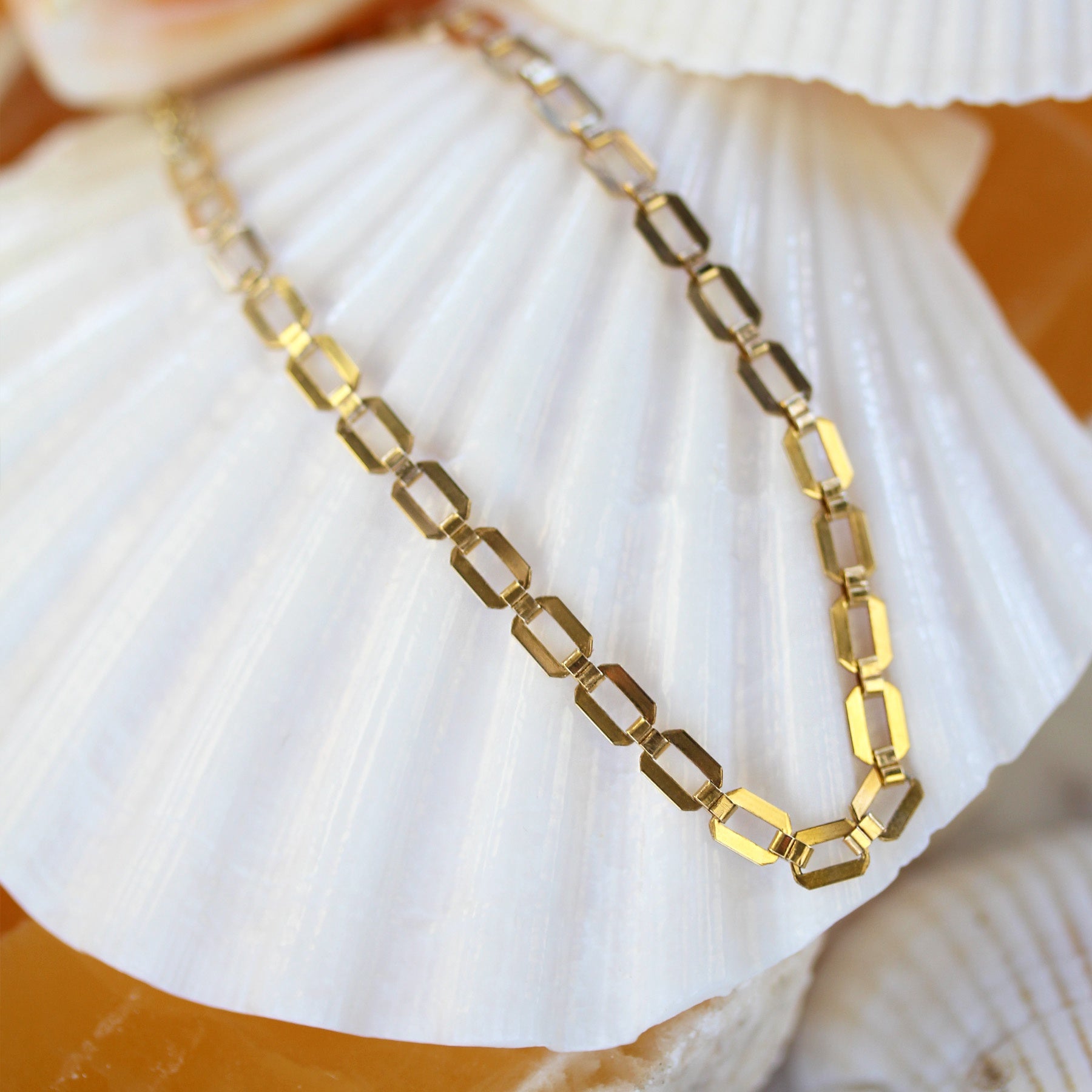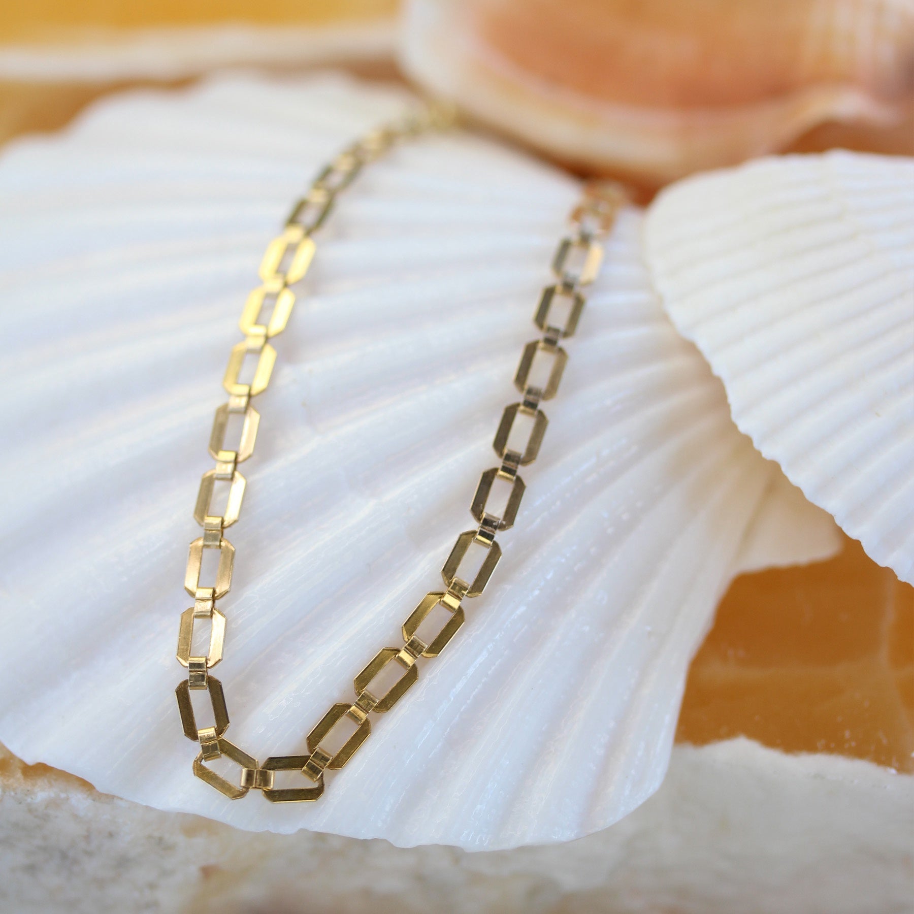 Sleek, modern, and effortlessly polished, the 14k gold-filled Emery Anklet is a refined staple for everyday styling. Its geometric flat-link design catches the light beautifully, creating a clean, contemporary look that still feels timeless.