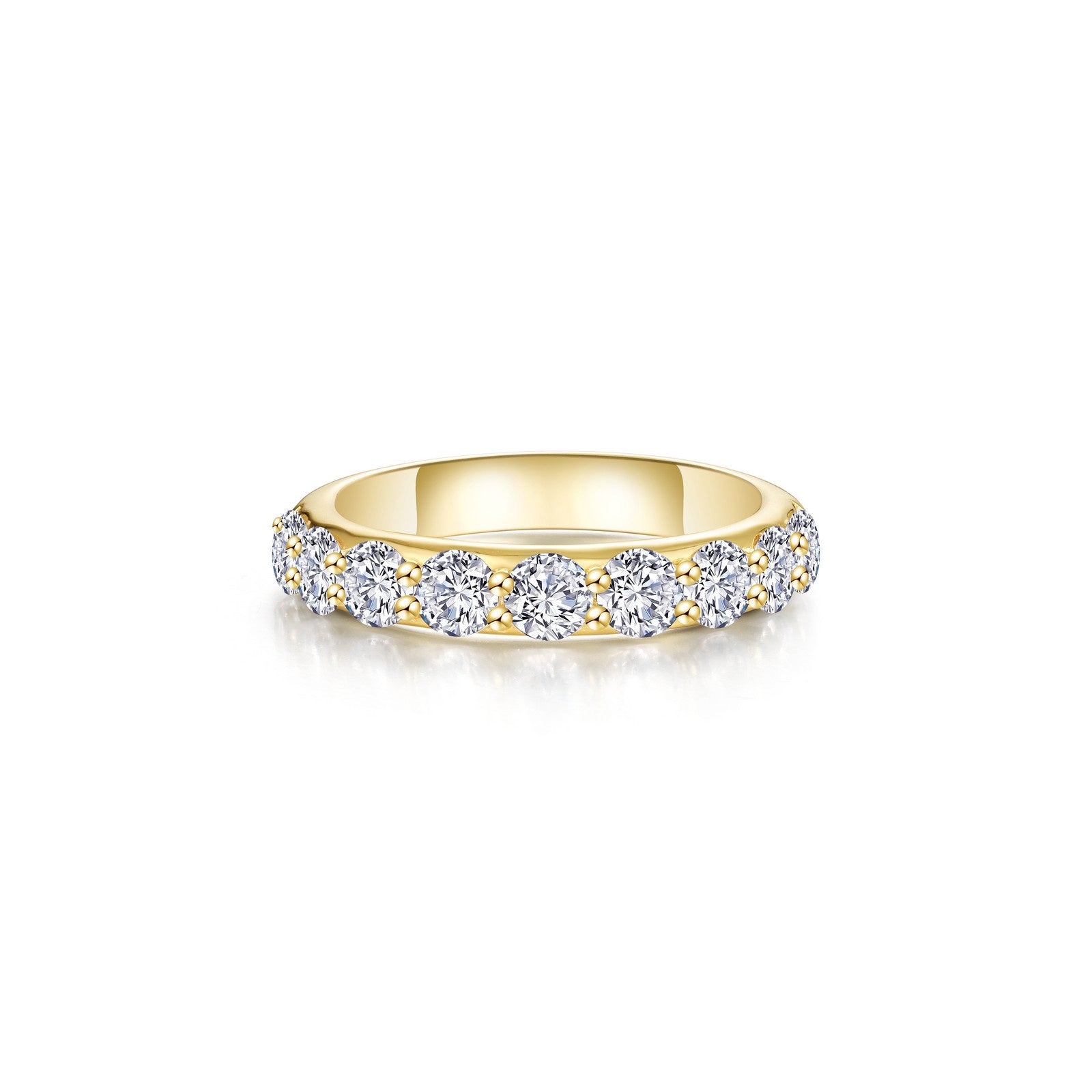 A divine touch of sparkle. This delicate band features a half-eternity of Lassaire simulated diamonds for effortless sparkle. Designed for all-day comfort, it’s lightweight and refined. Available in four carat weight options and crafted in sterling silver plated with gold.