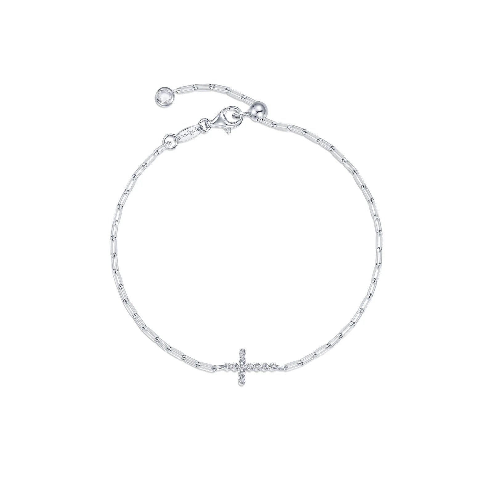 Sleek and meaningful. This bracelet features a minimalist paperclip chain accented by a dainty bezel-set cross. Understated yet symbolic, this piece blends quiet elegance with timeless faith. Set with Lafonn's signature Lassaire simulated diamonds in sterling silver bonded with platinum.