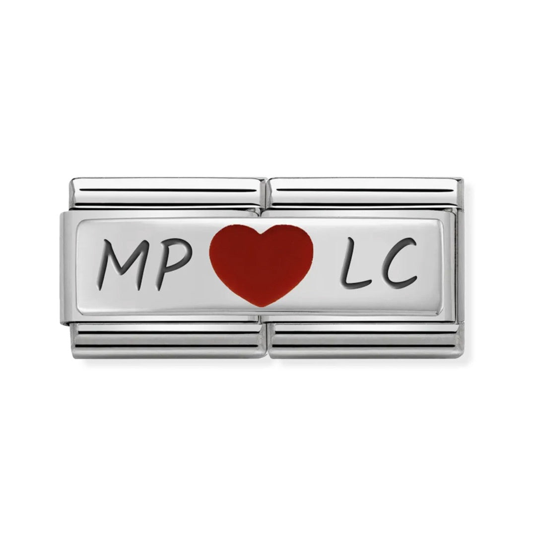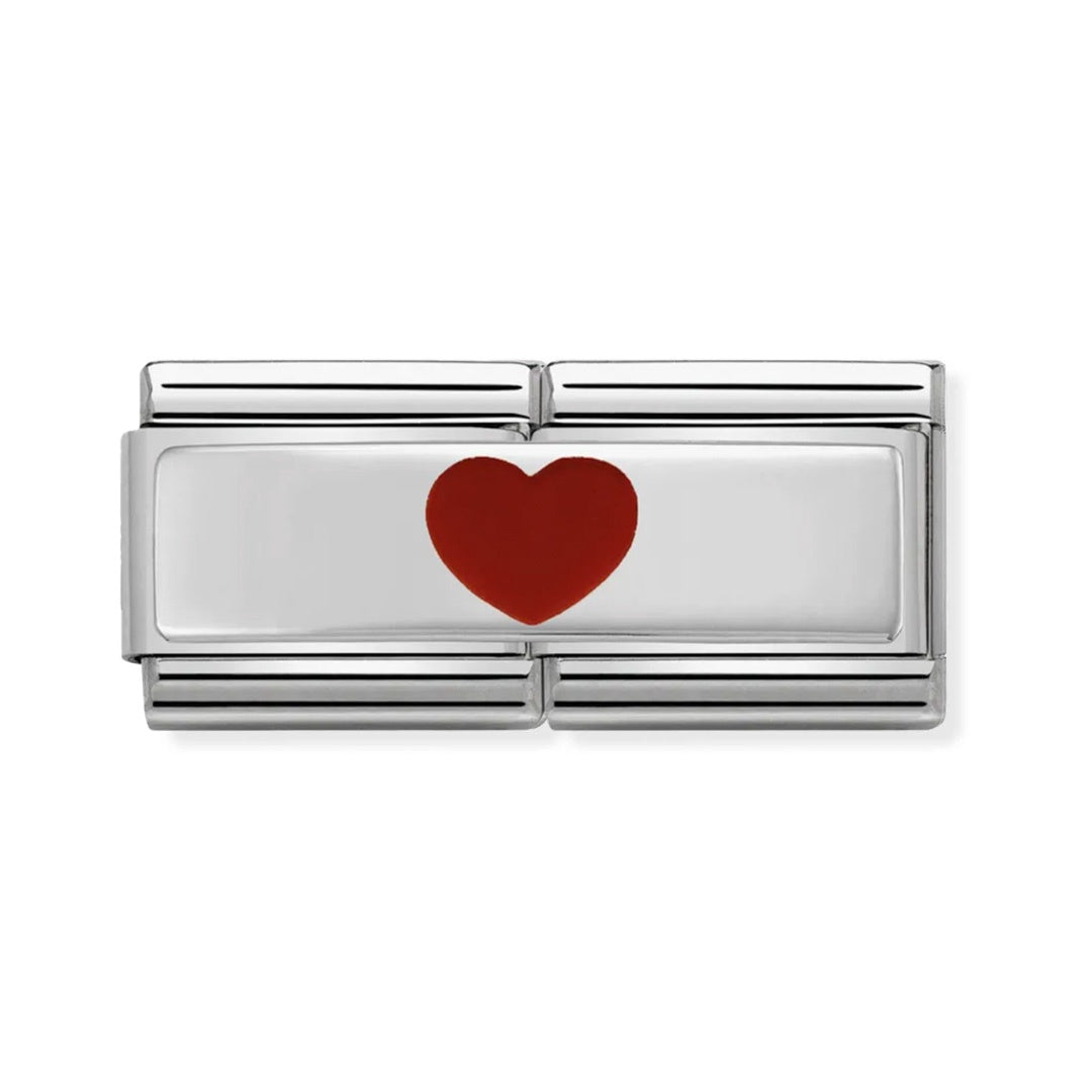Add a traditional symbol of love to your Nomination Classic bracelet with the Silver Red Enamel Heart Double Charm, crafted from stainless steel, sterling silver and bold red enamel detailing. This charm can be engraved with two initials either side of the red heart, making this the perfect, meaningful gift for a loved one.