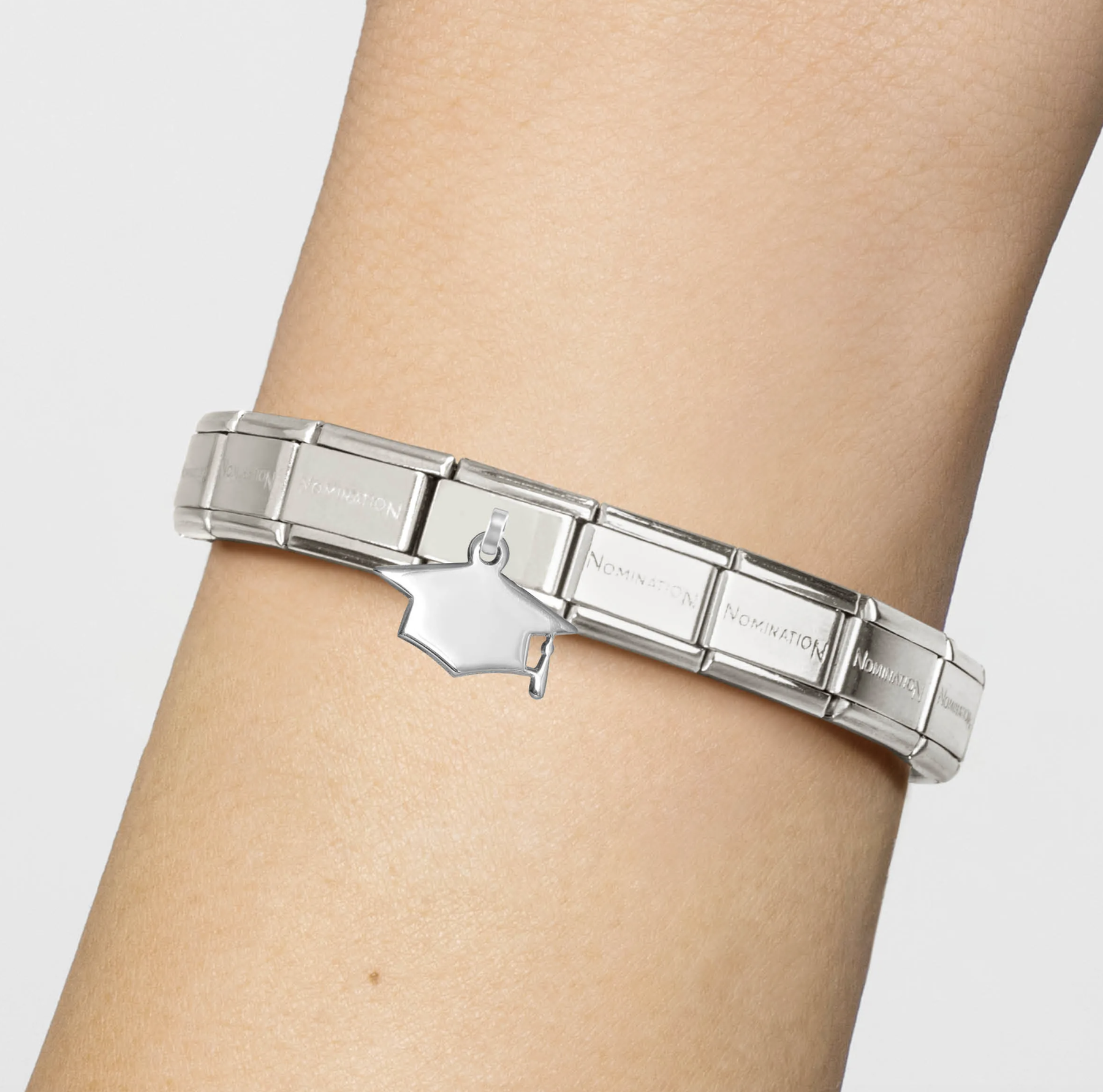 Original Nomination Composable Classic Pendant Link for Composable bracelet in stainless steel with sterling silver Star symbol with White Cubic Zirconia and sterling silver Star pendant with White Cubic Zirconia. Add this precious Link to your bracelet and dream about twinkling summer night skies. This Link is the perfect gift for anyone who has lots of wishes to make on falling stars.