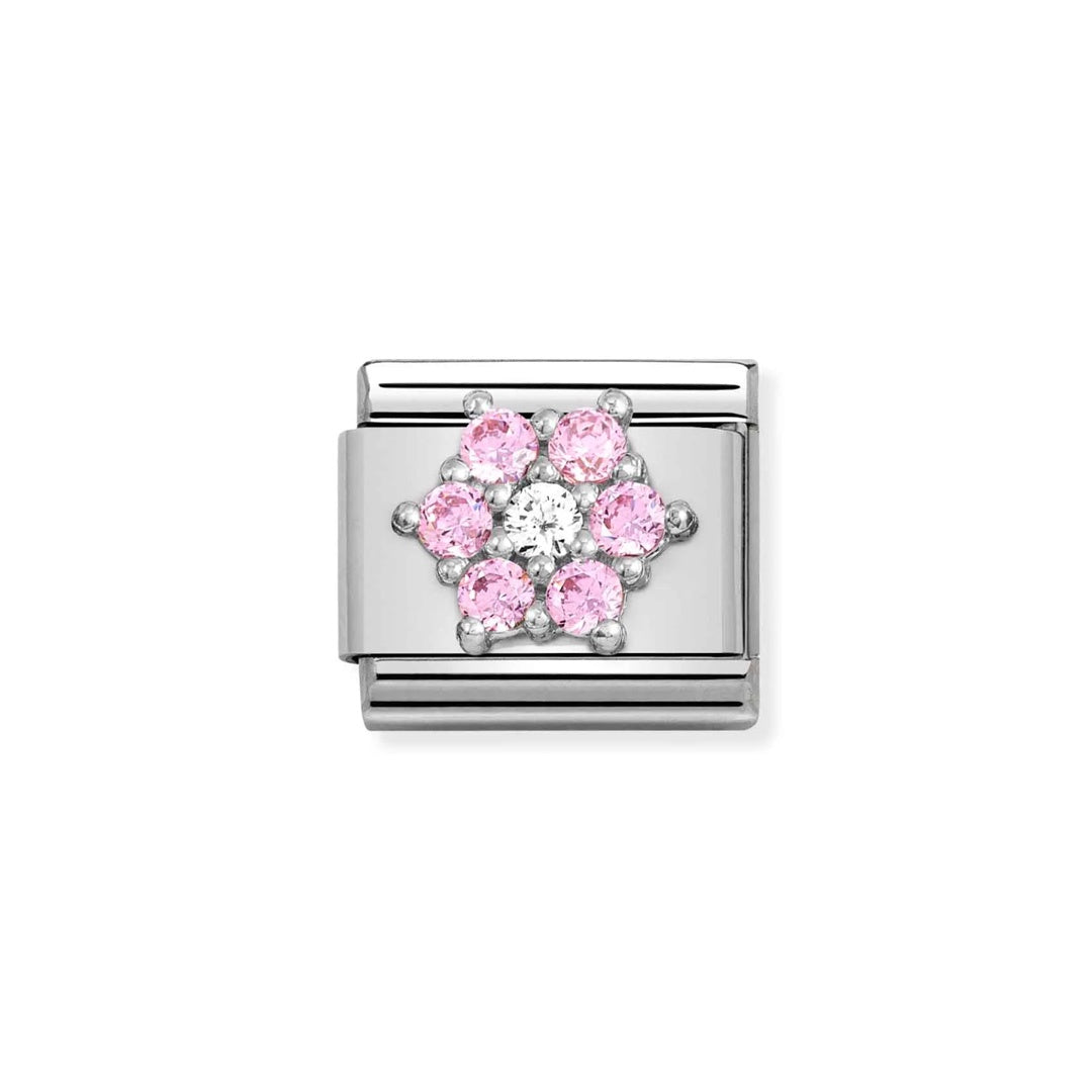 Original Nomination Link for Composable Classic Bracelets in stainless steel with Flower in sterling silver and pink and white Cubic Zirconia. This flower that is just perfect for a princess!