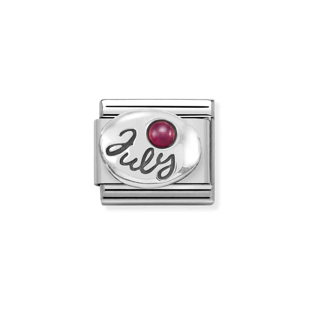 Charm for the original Composable Classic bracelet in stainless steel, sterling silver and Ruby. Made in Italy. A lovely Charm for anyone born in July.