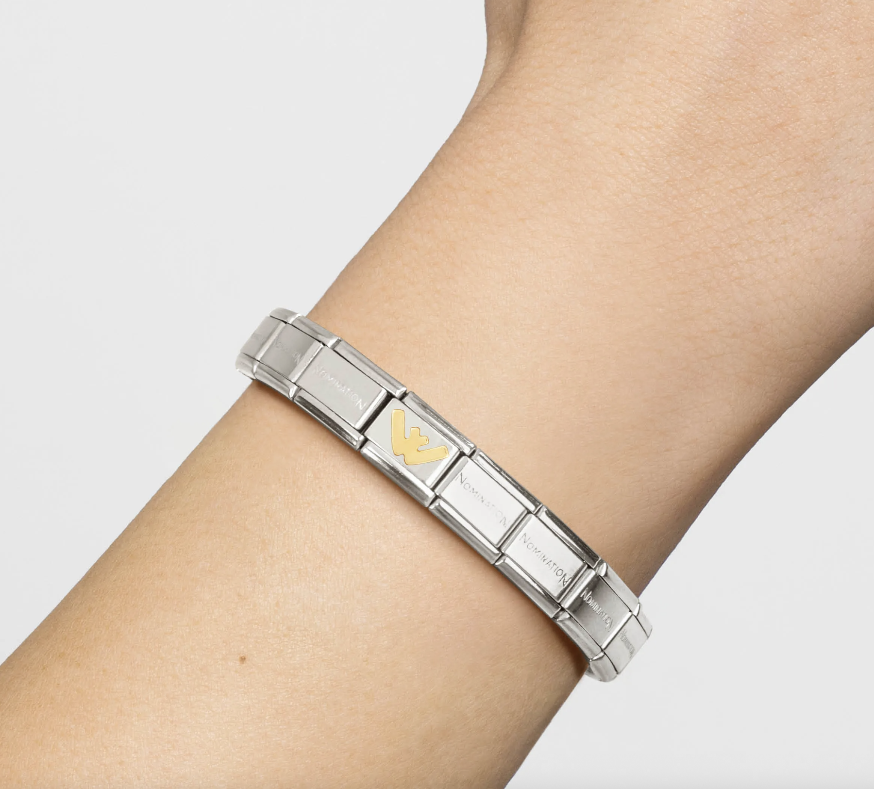 Original Alphabet Charm for Nomination's Composable Classic Bracelet with Letter B in stainless steel and bonded yellow gold. Available Charm versions: A-Z. The perfect birthday gift.