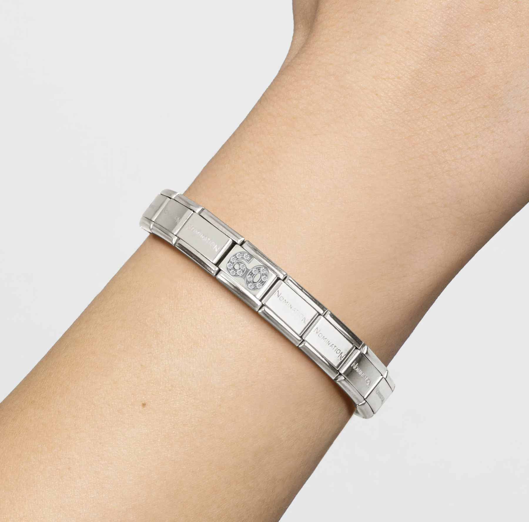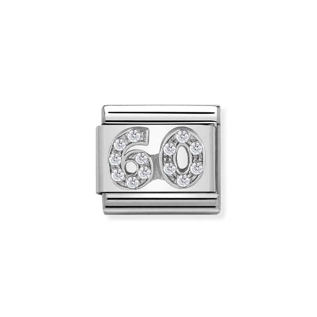 Original Charm for Nomination's Composable Classic bracelet in stainless steel with the Number 60 in sterling silver and white Cubic Zirconia. Made in Italy. Say it with Composable: "Happy Birthday to you!"