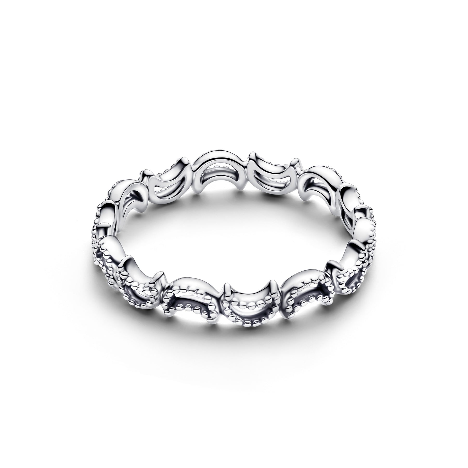 Carry the magic of the night sky. Our sterling silver crescent moon ring features a row of connected moons set with beads β a sign of cosmic unity.
