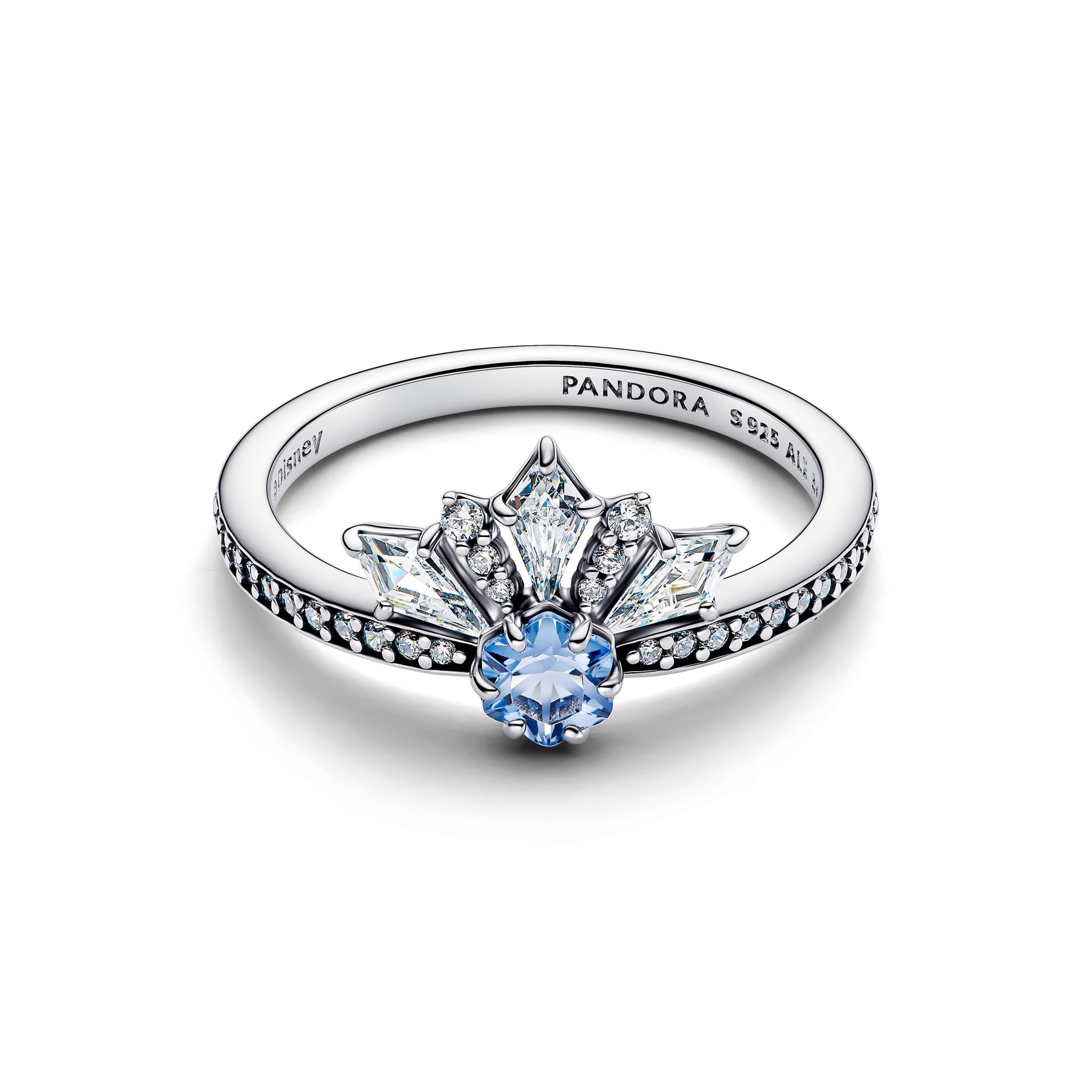 Shine like the Snow Queen. Show your love for Disney’s Frozen with this striking sterling silver ring designed in a tiara constellation and featuring blue and clear stones.