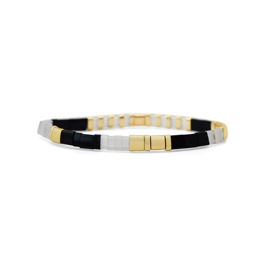 These stretch bracelets in the “Note To Self” Collection are made from premium quality Japanese glass Miyuki® tila beads. They are meticulously assembled with a Morse code pattern that speaks an inspirational message. Then they are displayed on packaging that helps tell the perfect story! About Tila Beads They are manufactured with glass that is melted in a 1400 degree furnace and then formed into a tubular mold through blowing and stretching. Then, a special cutting machine is used to perfectly cut each bead to the desired size. A second forming process, after cutting, creates the final shape before they are cleaned and then finished with dyeing, printing, or electroplating, etc. This technically difficult process creates premium quality beads with brilliant appeal.