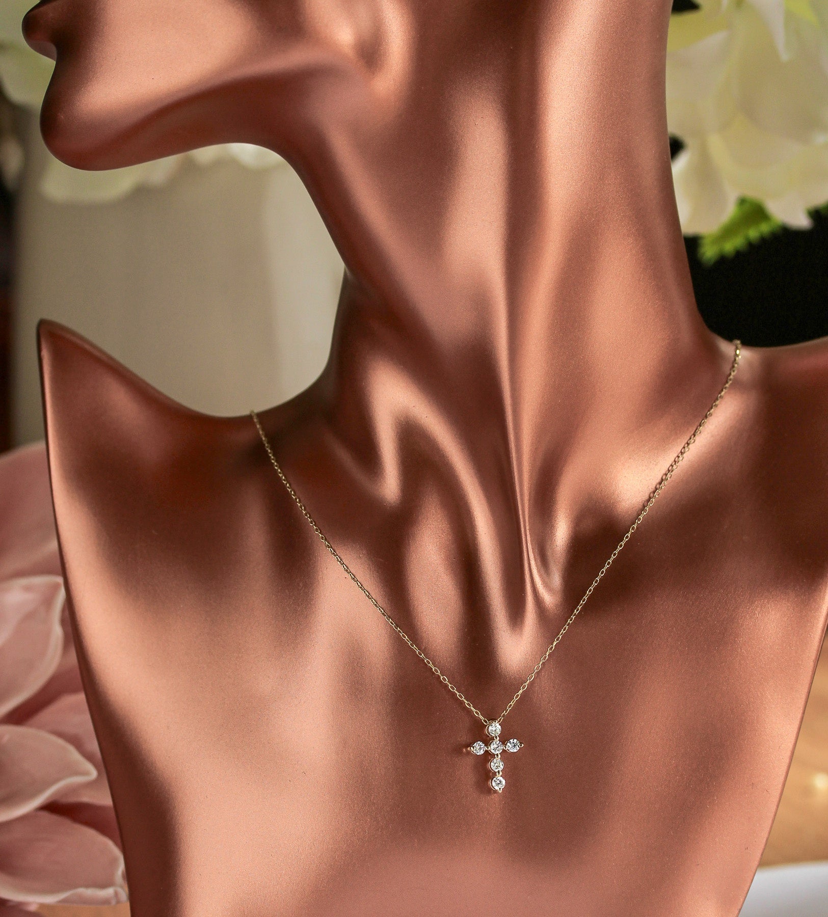 Each diamond is carefully prong-set to enhance brilliance while maintaining a refined, delicate silhouette. The warm glow of yellow gold paired with radiant diamonds makes this piece both meaningful and timeless — perfect for everyday wear or special occasions.