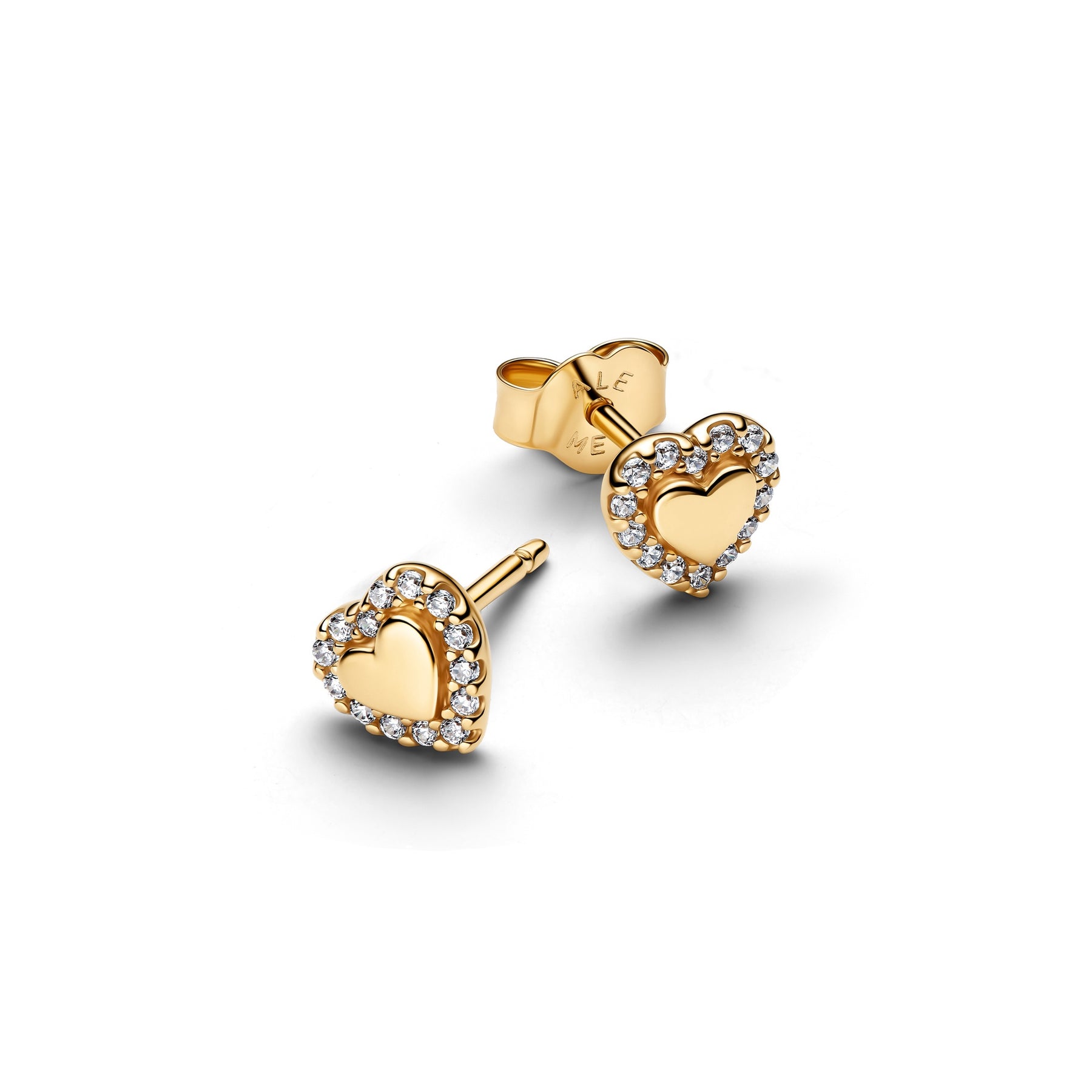 Crafted in 14k gold plating, these stud earrings feature a polished heart surrounded by sparkling stones. Sold as a pair, so you can double up on love.
