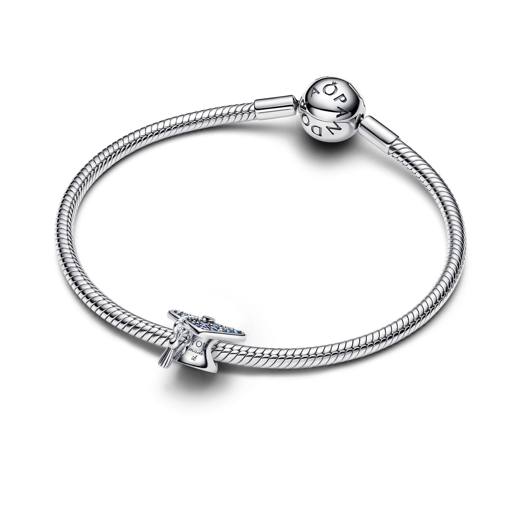Crafted in sterling silver with sparkling stone and man-made crystal details, this charm features the engravings 'CONGRATS' and 'YOU made it', as well as a moveable tassel.