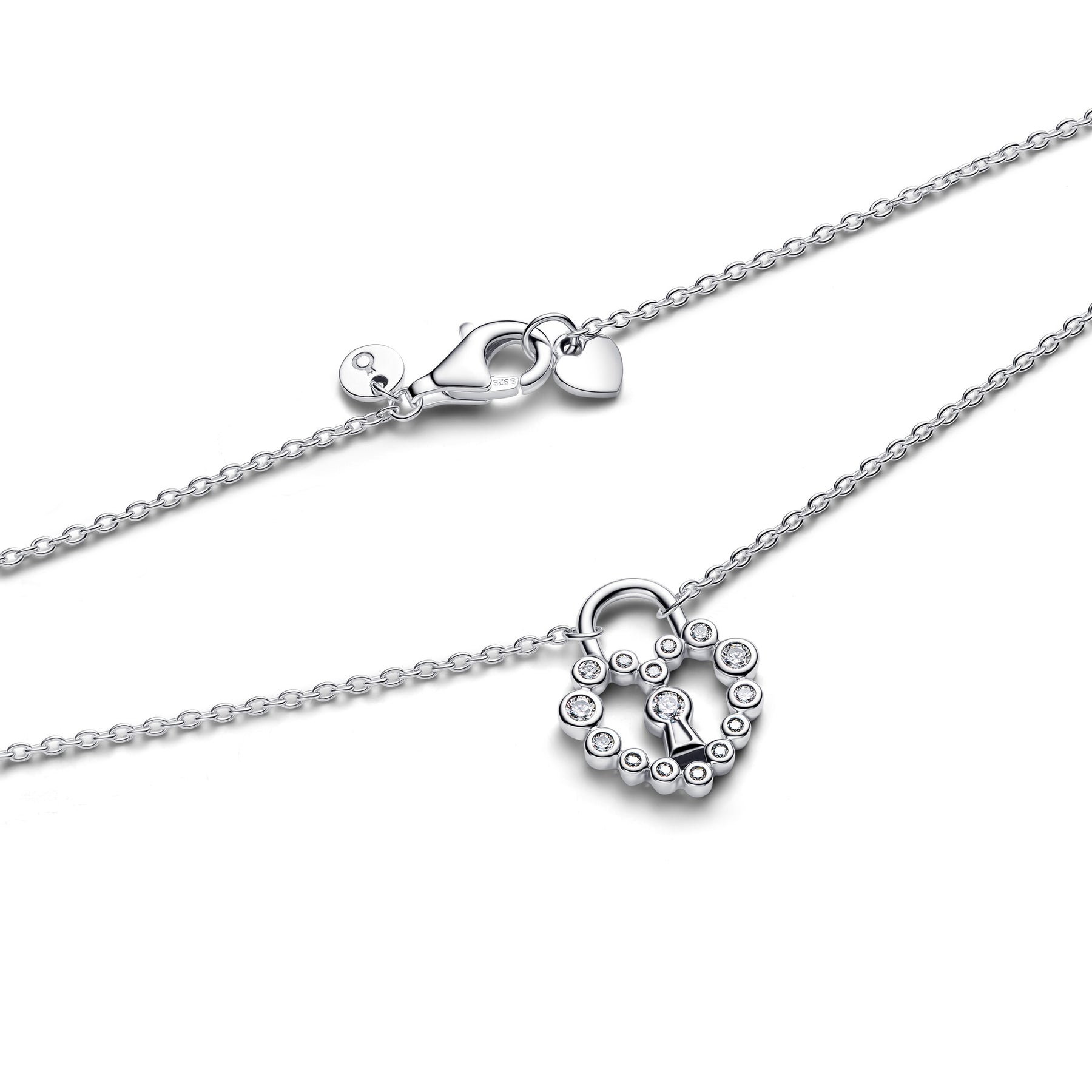 Lock in to love with our sterling silver heart padlock pendant. Shining with cubic zirconia in varying sizes to form a heart, it features a central padlock as a symbol of love and unity.